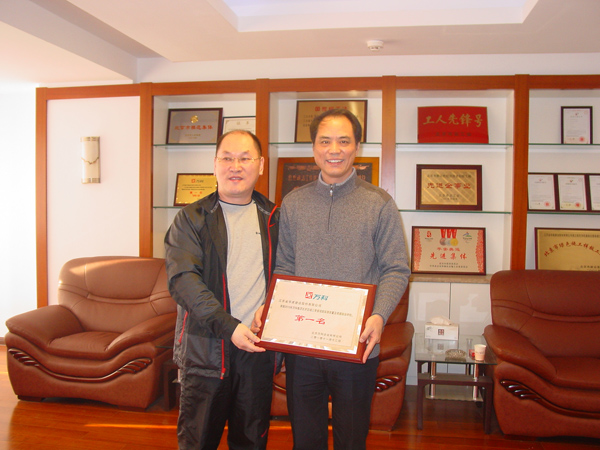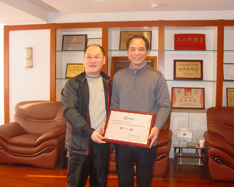 北京萬科領導親赴北京公司授牌 時間:2010-12-14 5572 北京公司在萬科地產第三季度萬科北京區域在建項目產品質量評估中,萬科藍山項目經專家現場實測實量,390個點合格率為99.39%,觀感質量評分、質量風險評估綜合得分97.35%,項目綜合排名蟬聯第一。12月12日上午,北京萬科副總經理孔祥明率工程部經理、項目總經理等一行,特地趕到我公司,把第一名的獎牌隆重授予我公司陳榮春總經理。陳總對萬科的肯定和信任表示感謝,并期望雙方進一步加強友好合作,永續真誠友誼。