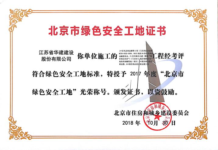 北京公司兩項工程獲北京市綠色安全工地 時間:2018-11-11 3986 近日,從北京市住房和城鄉建設委員會傳來喜訊,由北京公司總包承建的1#住宅及商業樓等4項(1#住宅及商業樓、2#住宅及商業樓)和1#住宅及商業樓等4項(3#限價商品房及商業樓、8#限價商品房及商業樓)兩個標段項目榮獲 “北京市綠色安全工地”光榮稱號,并獲頒證書。