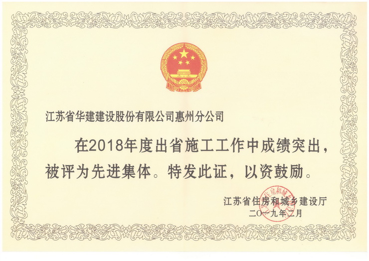 會議表彰了一批江蘇出省施工先進集體及先進個人。其中,惠州公司被江蘇省住房和城鄉(xiāng)建設(shè)廳表彰為2018年度江蘇出省施工先進集體,總經(jīng)理周群利、技術(shù)質(zhì)量處主任陳申高被江蘇省住房和城鄉(xiāng)建設(shè)廳表彰為2018年度江蘇出省施工先進個人;黃秀剛、邵群斌、王興東分別被江蘇省人民政府駐深圳(廣州)辦事處表彰為2018年度江蘇進粵、桂、閩、瓊施工質(zhì)量安全、經(jīng)營財務(wù)和新聞報道先進個人。