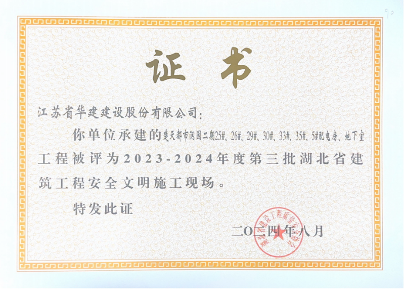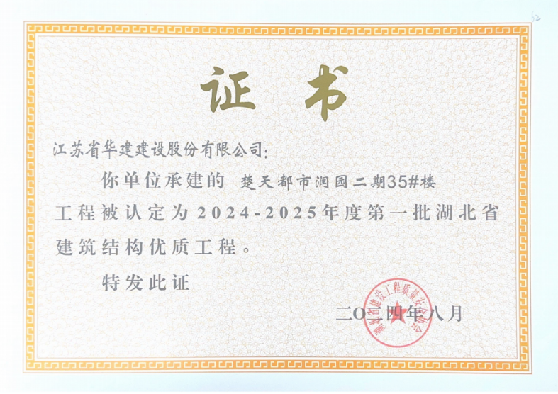 近日,公司承建的楚天都市潤園二期項(xiàng)目被湖北省建設(shè)工程質(zhì)量安全協(xié)會評為“2023-2024年度第三批湖北省建筑工程安全文明施工現(xiàn)場”和“2024-2025年度第一批湖北省建筑結(jié)構(gòu)優(yōu)質(zhì)工程”。