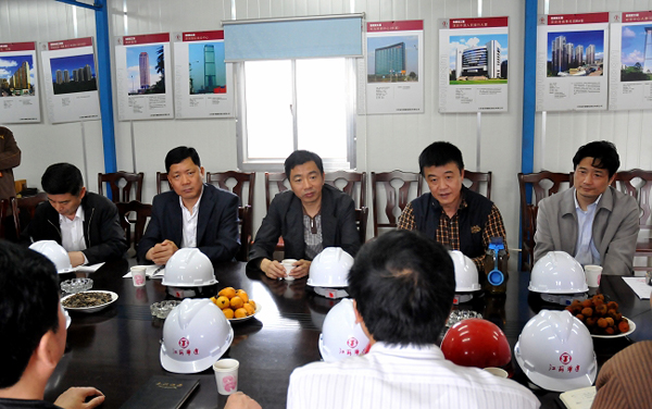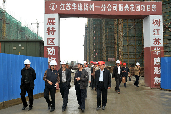 陸金龍董事長一行檢查振興花園安全生產工作 時間:2010-05-07 6025 5月5日,陸金龍董事長一行赴公司在揚首個土建項目振興花園檢查指導安全生產工作。在聽取了項目部相關同志對安全生產情況的具體介紹后,陸總指出,安全生產大于天,各級管理人員要在思想上高度重視,千萬不能有松懈麻痹思想,要對安全工作加大投入,在組織上層層落實,積極開展各類安全培訓教育,切實把安全工作做到位。隨后,陸總一行人到施工現場參觀檢查,對各項工作表示滿意。公司副總經理吳士茂、揚州一分公司李幼杰、王志明等領導陪同參加。