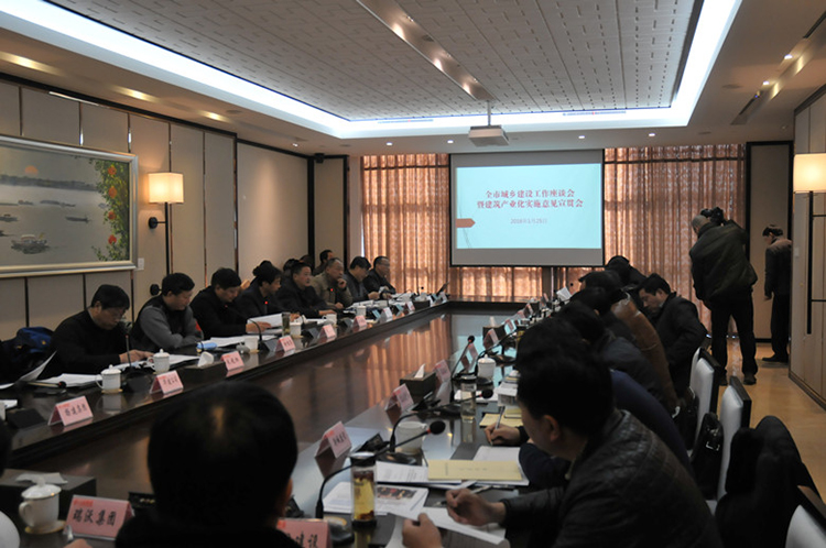 1月25日下午,揚州市城鄉(xiāng)建設工作座談會暨建筑產(chǎn)業(yè)化實施意見宣貫會在華建企業(yè)展示中心召開,揚州市城鄉(xiāng)建設局兼建工局局長楊正福主持會議,市城鄉(xiāng)建設局徐惟濤、成自勇、朱兆權等領導和各部門負責人,各縣(市)區(qū)建設局長、建工局長和市部分骨干建筑企業(yè)負責人參加會議,建工控股公司兼江蘇華建董事長陸金龍應邀參加并在會上介紹了華建近幾年來的發(fā)展經(jīng)驗。