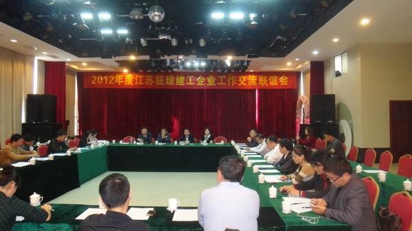 12月28日下午3點,由江蘇省住房和城鄉建設廳駐南方辦事處、海南省江蘇商會和江蘇省華建建設股份有限公司海南分公司聯合主辦的2012年度江蘇駐瓊建工企業工作交流聯誼會在海南省軍區迎賓館三樓多功能會議室召開。會議由江蘇華建海南分公司總經理王宏主持,海南省江蘇商會徐經國會長、江蘇省住建廳駐南方辦事處朱躍斌主任專程到會并作重要講話。