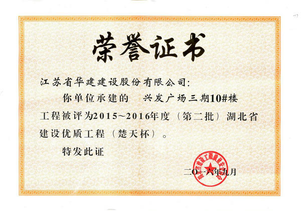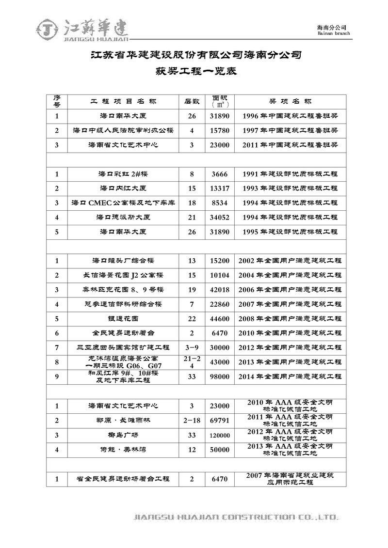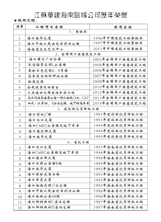 獲獎(jiǎng)工程一覽 時(shí)間:2019-01-01 13672 魯班獎(jiǎng) 全國(guó)用戶滿意建筑工程 全國(guó)AAA級(jí)安全文明標(biāo)準(zhǔn)化誠(chéng)信工地 海南省優(yōu)質(zhì)樣板工程 湖北省建筑優(yōu)質(zhì)工程