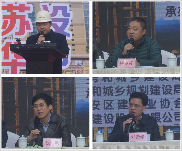 官盛春天項(xiàng)目經(jīng)理曹亞明代表公司介紹了官盛春天項(xiàng)目建筑安全文明施工標(biāo)準(zhǔn)化工作開展情況和主體結(jié)構(gòu)施工質(zhì)量控制情況;廣安區(qū)委常委、政法委書記萬良政通報(bào)了今年以來廣安區(qū)質(zhì)量安全工作開展情況;廣安市住建局黨組成員、總工程師劉運(yùn)舉號(hào)召各參會(huì)單位以我司官盛春天項(xiàng)目為榜樣,比學(xué)趕超、奮勇拼搏,努力實(shí)現(xiàn)質(zhì)量安全新突破和新發(fā)展,為不斷推動(dòng)全市建筑質(zhì)量安全水平做出貢獻(xiàn);四川省質(zhì)安監(jiān)督總站副站長任兆祥結(jié)合全省實(shí)際從狠抓安全生產(chǎn)工作、工程質(zhì)量治理長效監(jiān)管機(jī)制建立及質(zhì)量安全責(zé)任落實(shí)三方面進(jìn)行強(qiáng)調(diào),并提出了下步工作開展計(jì)劃和要求。