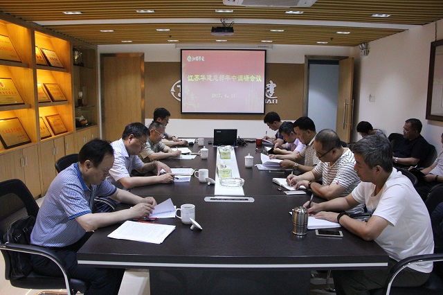 2017年6月11日,江蘇華建總經理宗有農、副總經理、總工程師程杰、審計部經理王琳及辦公室主任余濤一行蒞臨珠海區域公司,開展年中調研工作。區域公司經營層、各部室負責人參加調研會議。