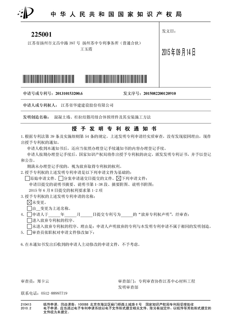 日前,江蘇華建上海區(qū)域公司發(fā)布的《混凝土墻、柱拉結筋用組合體預埋件及其安裝施工方法》發(fā)明創(chuàng)...