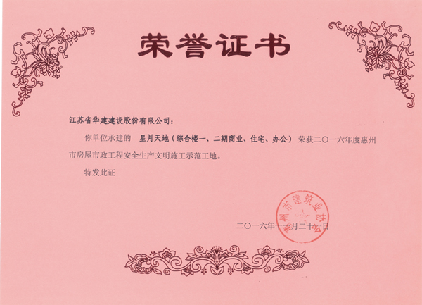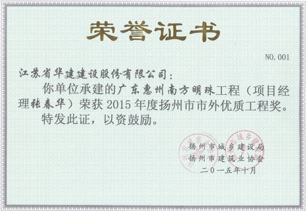 2015年揚州市市外優(yōu)質(zhì)工程獎2014年度市外瓊花杯-廣東惠州萬麓湖一期2013年度市外瓊...