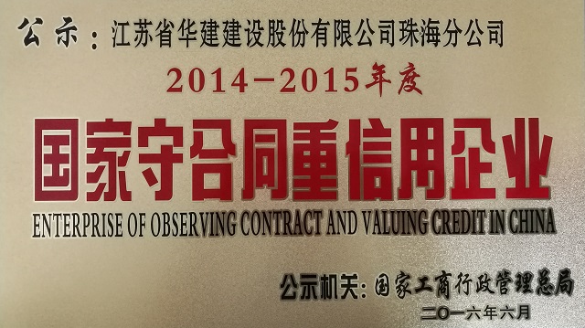 日前,國家工商行政管理總局向社會公示2014-2015年度“守合同重信用”企業名單,珠海公...