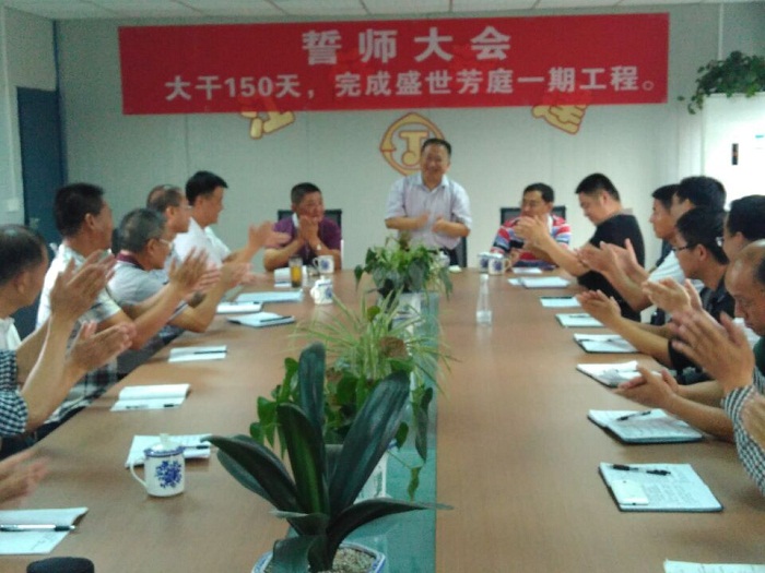 8月31日下午,盛世芳庭項(xiàng)目部在工地會(huì)議室舉行“大干150天誓師大會(huì)”,江蘇華建常務(wù)副總經(jīng)...