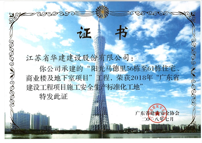 陽光馬德里獲2018年廣東省建設工程項目安全生產生產標準化工...