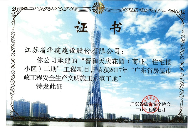 晉和天慶二期獲2017年廣東省建設工程項目施工安全生產標準化...
