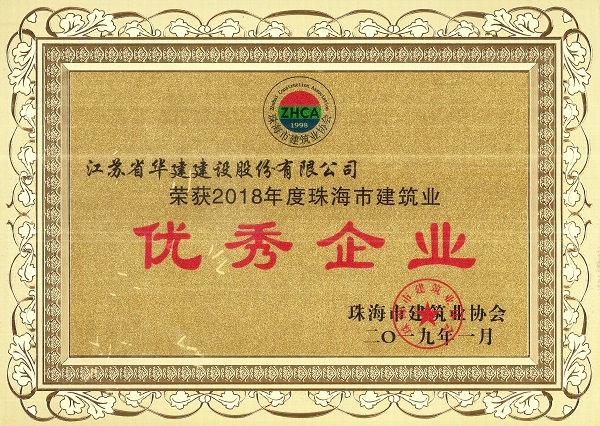 公司獲評2018年度珠海市建筑業優秀企業