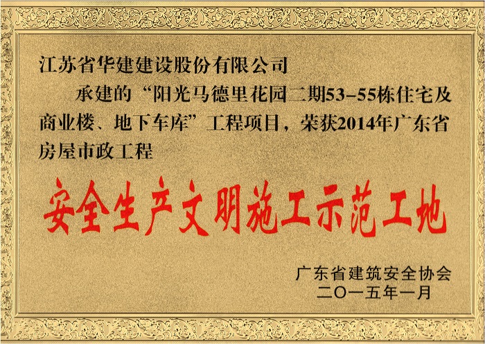 陽(yáng)光馬德里二期工程榮獲2014年廣東省AA級(jí)安全文明標(biāo)準(zhǔn)化工...