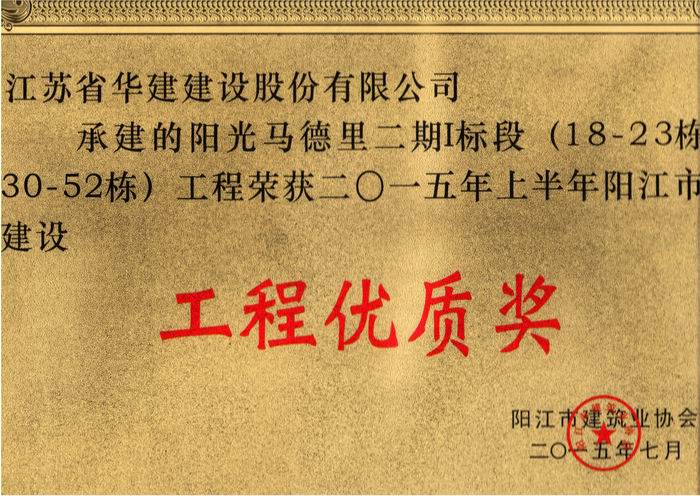 陽(yáng)光馬德里二期I標(biāo)段(18-23棟、30-52棟)工程獲20...