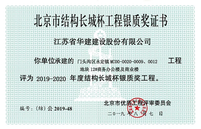 近日,北京市工程建設(shè)質(zhì)量管理協(xié)會(huì)公布了2019-2020年度第一批北京市建筑結(jié)構(gòu)長(zhǎng)城杯獲獎(jiǎng)工程名單,由我司承建的門(mén)頭溝區(qū)永定鎮(zhèn)MC00-0020-0009、0012地塊6#住宅樓及商業(yè)樓項(xiàng)目和門(mén)頭溝區(qū)永定鎮(zhèn)MC00-0020-0009、0012地塊12#商務(wù)辦公樓及商業(yè)樓項(xiàng)目均被評(píng)為2019-2020年度結(jié)構(gòu)長(zhǎng)城杯銀質(zhì)獎(jiǎng)工程。