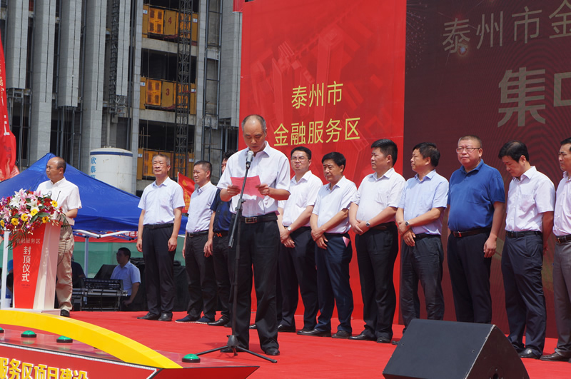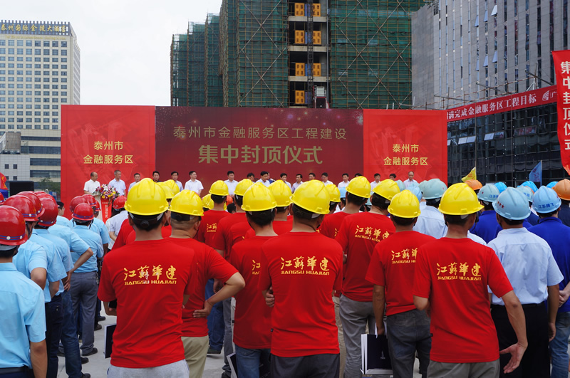 泰州金融服務(wù)區(qū)工程建設(shè)封頂儀式隆重舉辦 時間:2016-08-08 4459 8月8日,泰州市政府在由蘇北分公司承建的泰州金融服務(wù)區(qū)隆重舉辦封頂儀式。江蘇華建副董事長陳榮春作為施工單位代表作發(fā)言。