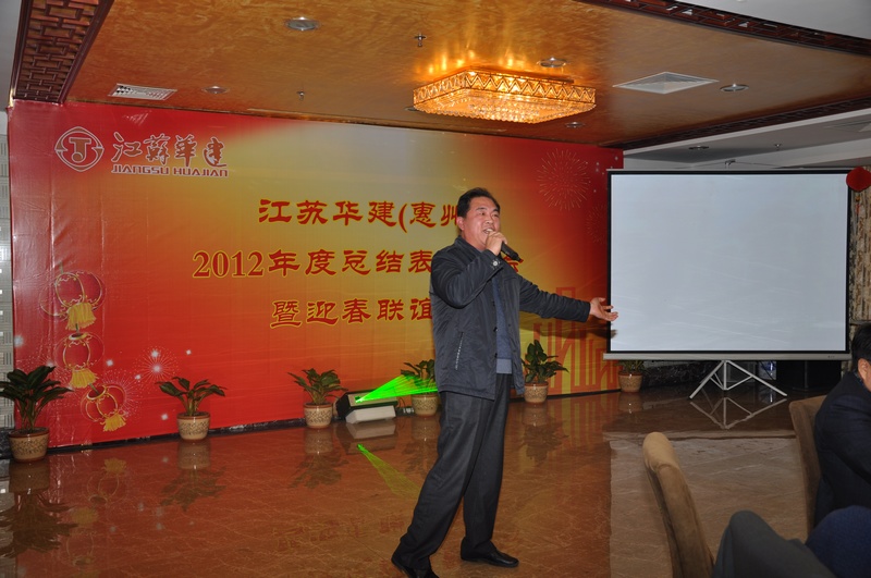 在隨后的迎春聯(lián)誼會上,一臺由惠州公司上下精心準備、齊力打造、自編自演的精彩演出,表達出了廣大員工對2012年取得業(yè)績的自豪與喜悅,以及對公司美好未來的憧憬與向往。在演出中,由機具處員工莊曙演繹的男聲獨唱,以高亮的美聲唱法,讓在座嘉賓擊掌叫好;四位機關員工表演的三句半《華建style》,詼諧幽默談發(fā)展,回顧展望頌華建,讓在場觀眾掌聲不斷;蔡總和華總兩位領導帶頭獻歌,唱出了華建人對事業(yè)的激情與豪邁,對未來的堅定與信仰。最后,由宗總、林總兩位總部領導和惠州公司12名男女員工組成的合唱團獻上的一曲《華建之歌》更是將整個活動推向了高潮,臺上的小合唱變成了在場華建人的大合唱,掌聲歡呼聲此起彼伏,年會在歡歌笑語中圓滿結束。新年思變,實干興業(yè),華建人立足惠州,一路高歌,奮勇前行。
