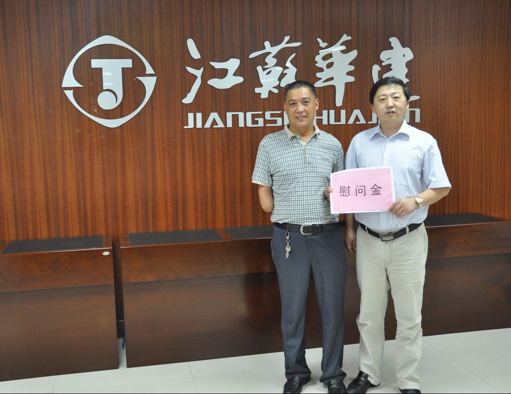 惠州區域公司慰問傷殘員工 時間:2013-08-06 3989 夏日炎炎,酷暑難耐。江蘇華建副總經理、惠州分公司總經理華恒榮率分公司工會親切慰問了在惠州分公司第九工程處工作的傷殘員工居家應(居家應90年代在寶應工作期間,不慎失去了右膀,被定為三級傷殘)。慰問中,華總詳細了解他的生活、工作情況,并向他發放慰問金,同時要求九處在工作、生活上給予一定的關心。居家應感謝組織對他的關心,表示身殘志不殘,更加積極努力的工作,不辜負組織的期望。惠州分公司總會計師高正金,分公司工會主席王健陪同慰問。