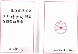 許世明所帶領(lǐng)的團(tuán)隊(duì)先后獲得“北京市優(yōu)秀青年突擊隊(duì)標(biāo)桿”、“全國(guó)職工職業(yè)道德建設(shè)百佳集體”、“北京市工人先鋒號(hào)”、“北京市模范集體”等榮譽(yù)稱號(hào);其本人先后獲得“揚(yáng)州市建工系統(tǒng)優(yōu)秀共產(chǎn)黨員”、“江蘇省優(yōu)秀項(xiàng)目經(jīng)理”、“北京市優(yōu)秀青年工程指揮”、“第二屆北京市創(chuàng)業(yè)青年首都貢獻(xiàn)獎(jiǎng)”、“首都勞動(dòng)獎(jiǎng)?wù)隆薄ⅰ敖K省建筑業(yè)企業(yè)優(yōu)秀建造師”等榮譽(yù)稱號(hào),許世明同志還被選拔為 “江蘇省333高層次人才培養(yǎng)工程”中青年科學(xué)技術(shù)帶頭人。