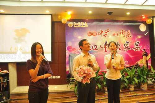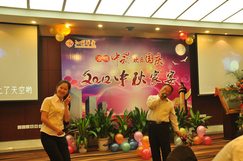 公司舉辦2012中秋家宴 時間:2012-10-06 4891 9月29日,公司在揚州西園大酒店隆重舉辦“濃情中秋,歡樂國慶——2012中秋家宴”,公司總部機關、在揚分支機構和駐外分公司回揚休假的經營層人員約百人共聚一堂,喜迎中秋、國慶佳節的來臨。家宴上,無論是領導還是普通員工,大家縱情高歌,歡樂表演,充分展現了華建大家庭其樂融融的喜慶氣氛,同時展示了華建人昂揚向上的精神風貌。
