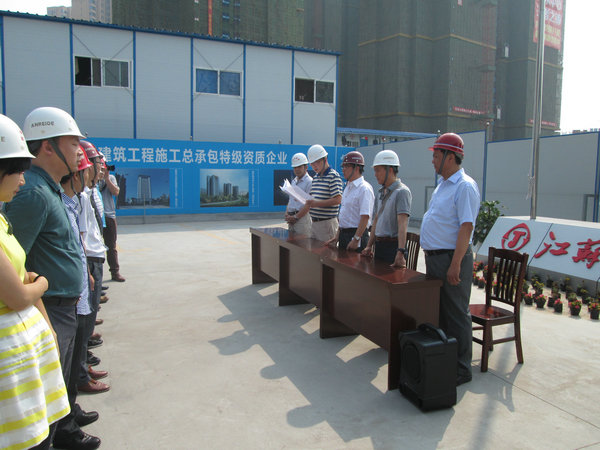 為深入踐行群眾路線,切實(shí)服務(wù)項(xiàng)目建設(shè),在活動(dòng)中 “精神提振、工作提標(biāo)、行政提效、服務(wù)提質(zhì)”,6月9日上午,宜昌市住建委黨的群眾路線教育實(shí)踐活動(dòng)“百名服務(wù)專員進(jìn)項(xiàng)目”活動(dòng)在我公司承建的興發(fā)廣場項(xiàng)目部正式啟動(dòng),市建設(shè)工程質(zhì)量(安全)監(jiān)督站等相關(guān)單位的六十余名服務(wù)專員參加了啟動(dòng)儀式。