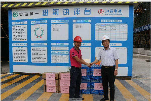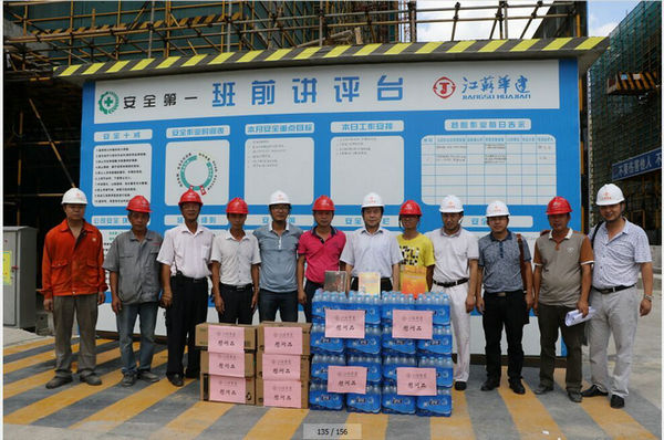 區(qū)域公司領(lǐng)導赴三亞工地進行高溫慰問 時間:2015-06-20 3486 6月19日上午,海南分公司黨總支副書記沈巨青帶隊,在分公司工會代表等相關(guān)部門陪同下,走訪慰問了三亞婦幼保健院項目部,看望了堅守崗位奮戰(zhàn)在高溫一線的項目部人員,并給他們送去了礦泉水、洗漱用品和防暑藥品。 慰問組一行實地了解項目部的進展情況以及現(xiàn)場人員的食、住、行、業(yè)務學習安排等情況,叮囑大家在高溫季節(jié)要切實加強現(xiàn)場管理,繃緊安全弦,確保平穩(wěn)有序生產(chǎn)。