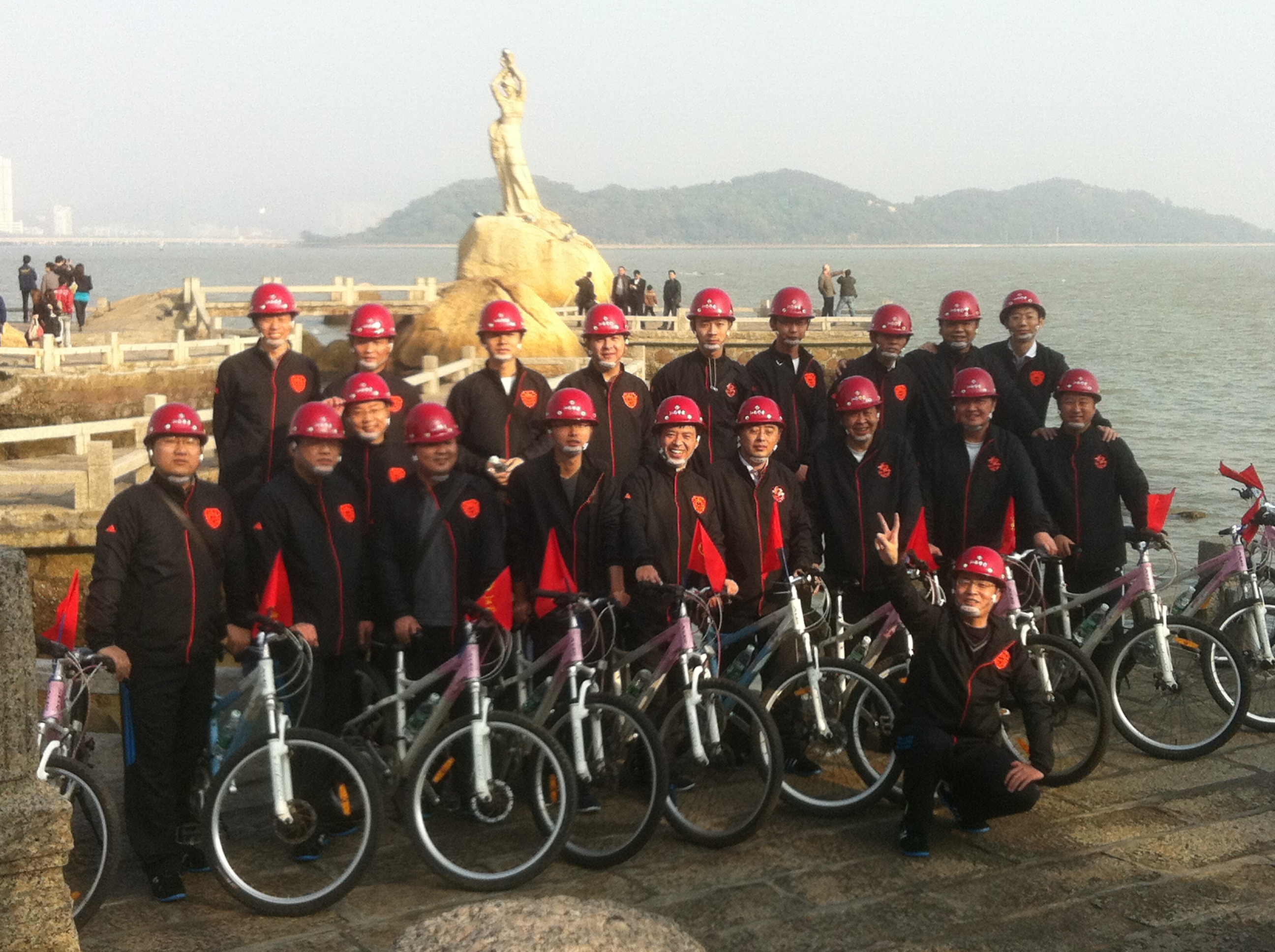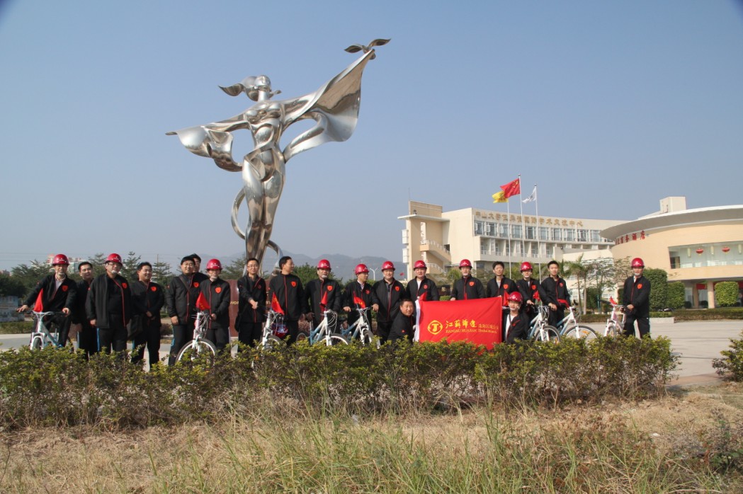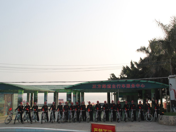 2012年1月1日上午9時,珠海區(qū)域公司全體員工在公司經(jīng)理室的帶領(lǐng)下,統(tǒng)一著裝,頭戴印有江蘇華建標(biāo)識的安全頭盔,騎著統(tǒng)一插有江蘇華建小紅旗的自行車,沿著珠海海濱綠道開展騎自行車迎新年活動。騎行的起點(diǎn)是珠海海濱浴場,終點(diǎn)是珠海淇澳島,來回全程56公里。騎行過程中,隊(duì)伍有序安全行進(jìn),引導(dǎo)車上醒目的江蘇華建大旗迎風(fēng)招展,每輛自行車前面的江蘇華建小紅旗也分外引人注目。繆國樞總經(jīng)理身先士卒,騎行在隊(duì)伍的最前面,無論是年近6旬的老員工,還是剛工作不久的新員工,個個爭先恐后,奮勇向前,江蘇華建這支特殊的“騎兵隊(duì)”在新年的第一天飛行在珠海的海濱綠道上,形成了一道亮麗的風(fēng)景線,引得許多路人和游客紛紛駐足觀望,許多攝影愛好者也紛紛舉起手中的相機(jī)爭相拍照。 這次元旦騎自行車活動既是一次低碳環(huán)保生活的宣傳,也是一次江蘇華建員工良好精神風(fēng)貌的展現(xiàn),通過這次活動既鍛煉了員工的體魄,更激發(fā)了員工們新的一年里奮發(fā)向上,團(tuán)結(jié)拼搏,奔向新未來的昂揚(yáng)斗志。