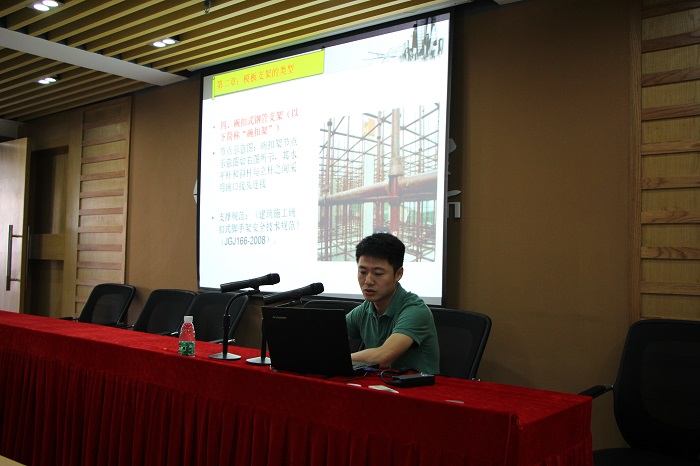 會(huì)上,安全設(shè)備處主任丁瑞華、副主任陳榮就腳手架和模板支架搭設(shè)具體細(xì)節(jié)實(shí)施、施工現(xiàn)場(chǎng)存在的問(wèn)題等,以圖文并茂的形式展示了關(guān)鍵點(diǎn)與控制要領(lǐng),使培訓(xùn)人員對(duì)腳手架搭設(shè)和模板支架搭設(shè)安全控制點(diǎn)更加清晰明朗。盧總分享了北京綠色施工和公司魯班獎(jiǎng)項(xiàng)目考察學(xué)習(xí)的經(jīng)驗(yàn)感悟,就其中珠海公司可以借鑒學(xué)習(xí)的部分做了深入細(xì)致的講解,他激勵(lì)大家要以魯班精神打造華建的精品工程。
