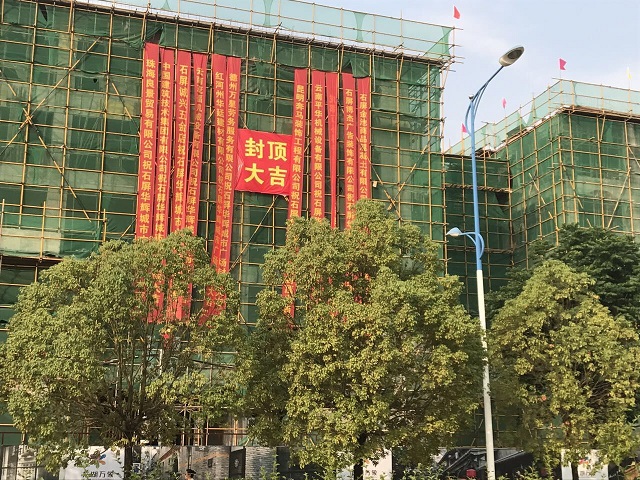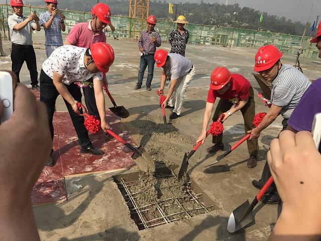公司首個在滇項目——華輝城市廣場順利封頂 時間:2017-05-07 3387 5月6日,公司首個在滇項目——云南石屏縣華輝城市廣場舉行主體結構封頂儀式。重慶分公司總經理嚴正濤出席儀式。 華輝城市廣場項目位于石屏縣新城核心中央地段,為該縣城的“CBD”。整個建筑面積為18萬平方米,地上面積為13.4萬㎡,地下4.5萬平方米。其中一期工程建筑面積為93843.78平方米,承包范圍土建、水電、消防、門窗、室外園林綠化等工程(即除電梯工程外),一期主要以商業開發為主,項目結構為框架,以3層結構為主,預計2017年6月竣工。