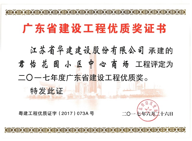近日,廣東省建筑業(yè)協(xié)會發(fā)文公布2017年度廣東省建設(shè)工程優(yōu)質(zhì)獎(jiǎng)名單,我司承建的珠海航空標(biāo)準(zhǔn)件保稅倉儲基地丹田廣場二期和君怡花園小區(qū)中心商場3個(gè)項(xiàng)目榜上有名。