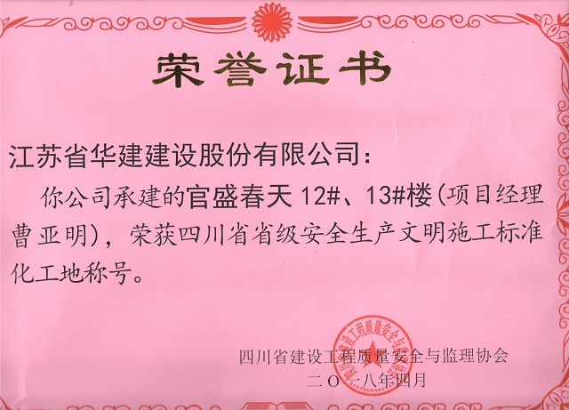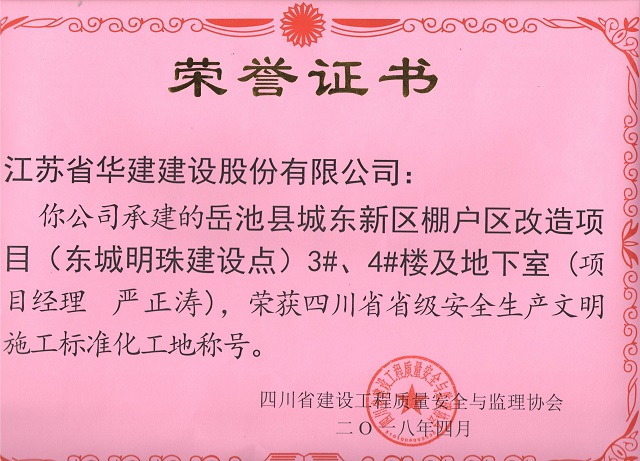 重慶分公司2項(xiàng)目獲評“四川省安全生產(chǎn)文明施工標(biāo)準(zhǔn)化工地” 時間:2018-04-20 3293 4月18日,重慶分公司項(xiàng)目創(chuàng)優(yōu)再獲新成果,公司承建的岳池縣城東新區(qū)棚戶區(qū)改造項(xiàng)目(東城明珠建設(shè)點(diǎn))3#、4#及地下室、官盛春天12#、13#樓被四川省建設(shè)工程質(zhì)量安全與監(jiān)理協(xié)會評為“四川省省級安全生產(chǎn)文明施工標(biāo)準(zhǔn)化工地”。至此,重慶分公司獲省級標(biāo)化工地獎項(xiàng)已達(dá)3項(xiàng)。