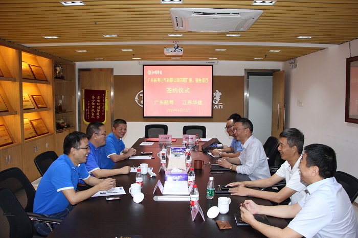 簡(jiǎn)短會(huì)談后,在雙方代表的共同見證下,公司總經(jīng)理呂方達(dá)與廣東航粵董事長(zhǎng)楊建豐簽訂了項(xiàng)目《建設(shè)工程施工合同》。