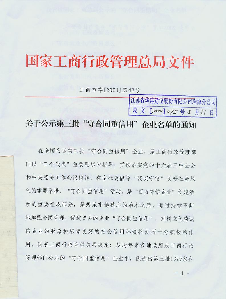 2004年國家級守合同重信用企業